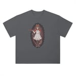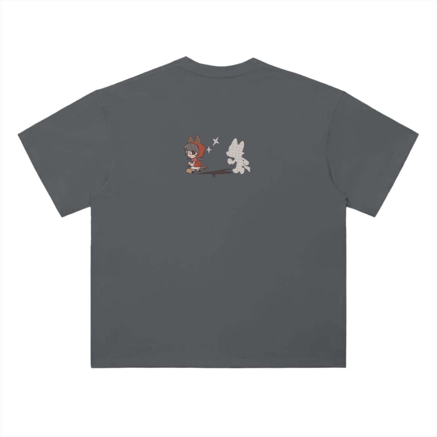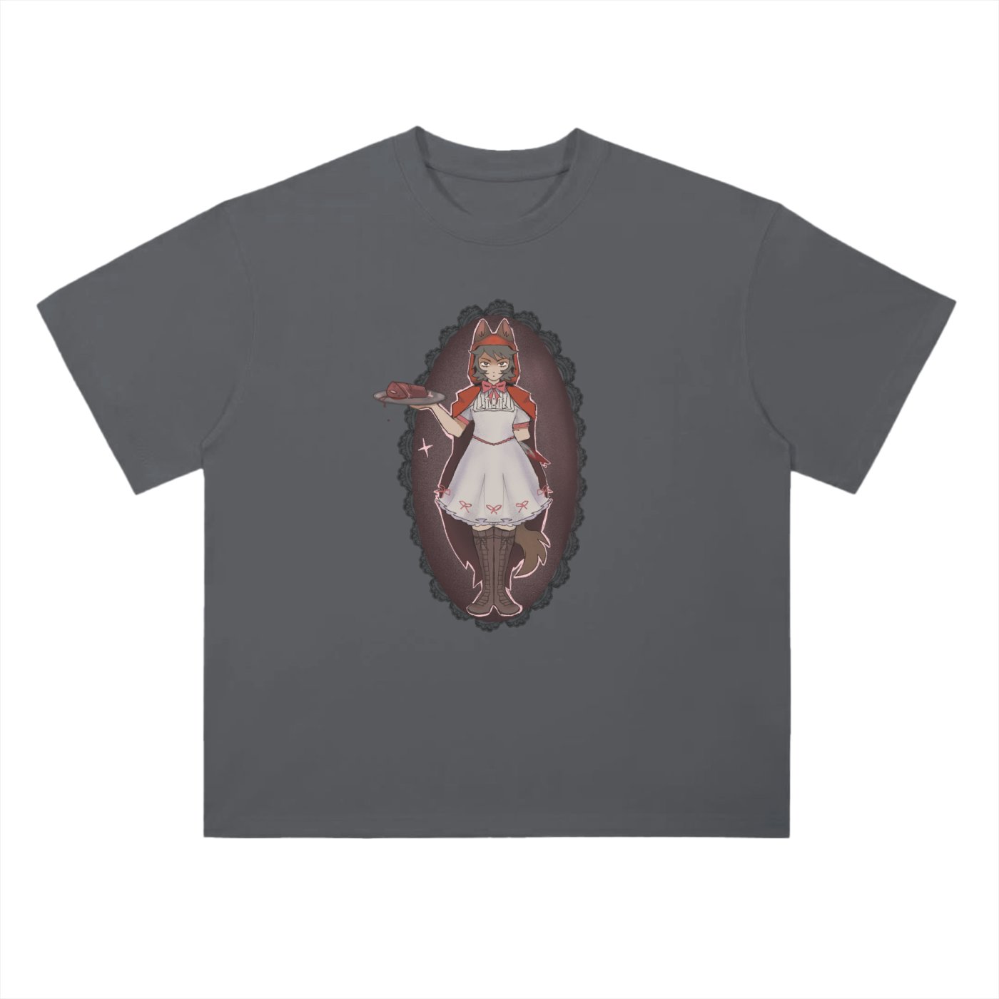 This is an original design shirt based off of red riding hood and some other fairytales I enjoy! This features a figure of a wolf girl on the front and a small design on the nape of the neck on the back of the shirt!